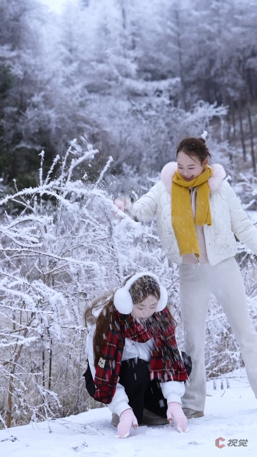 被雪花吸引来打卡游玩的市民游客,堆雪人、打雪仗,不亦乐乎,为这片静谧的冰雪世界增添了些许灵动之美。