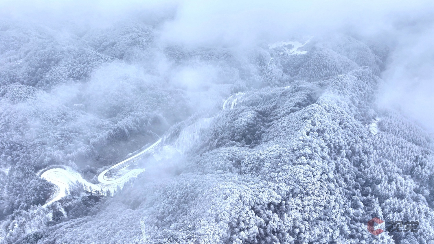 蜿蜒的山道隐匿于雪海之中,与银白林海、素裹远山相互映衬,勾勒出一幅大气磅礴的冰雪水墨画卷,尽显川北山野独有的冬日浪漫。