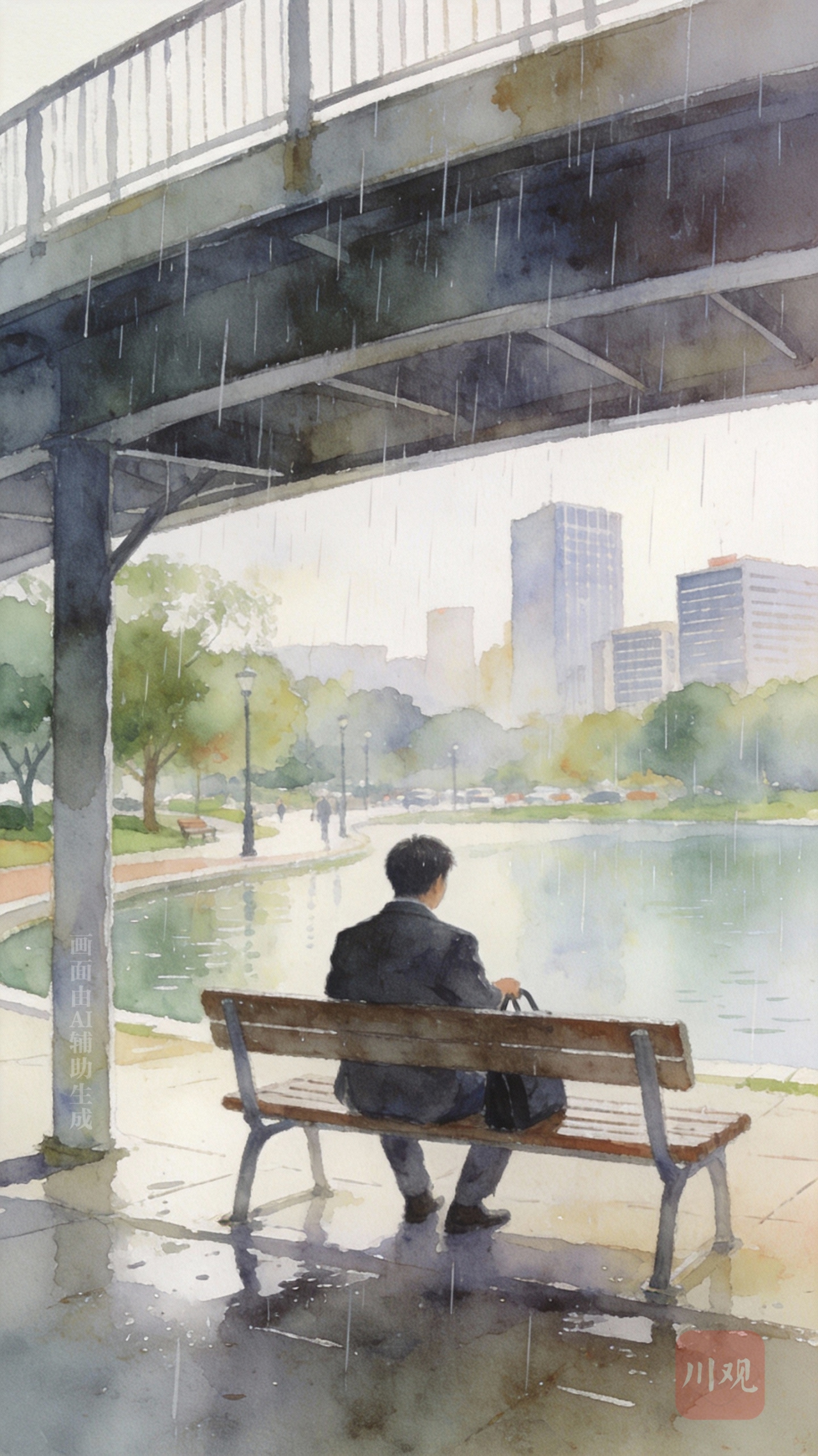 继续前行,雨却淅沥起来,把我拦在了湖边天桥下,那就在天桥下避雨吧。在天桥下站或坐,看久违的雨如绳如线如丝,接通天地,从阴暗的云天落下来,漫长的过程是看不见的,如我们看不见别人欢欣背后的艰辛。穿过翠绿黝黑的叶簇间,我看见了雨的样子,是亮的,如电灯光照亮的母亲夜里手中缝补的针线,只不过,它这样亮得粗粗细细,比母亲手中的线长到哪里去了。母亲是要趁着夜里给我们缝补,第二天几兄妹穿出去好避寒。天上落下的这长长的雨线呢,你要缝补什么?你要给我们什么呢?