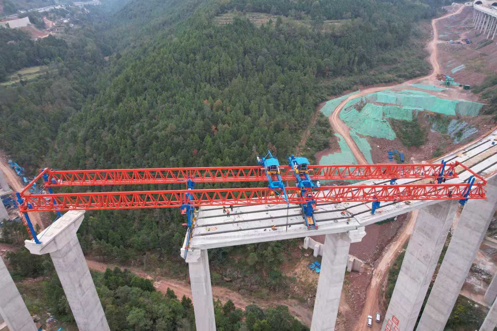 周家河枢纽互通位于广元市昭化区与利州区交界的周家河附近,该枢纽互通共设14条匝道、23座桥梁,包含最高93米的桥墩群和半径52米的极限小半径曲线,并需3次上跨下穿既有高速公路,施工技术难度大,安全风险较高。