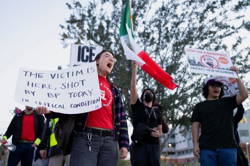 1月27日,人们在美国亚利桑那州图森抗议美国边境巡逻队开枪致一男子重伤。
