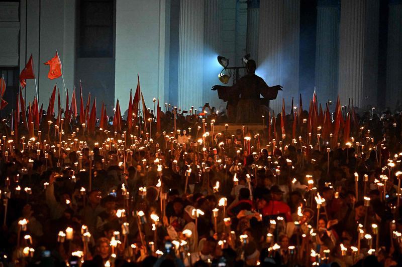 1月27日,人们在古巴首都哈瓦那参加火把游行。