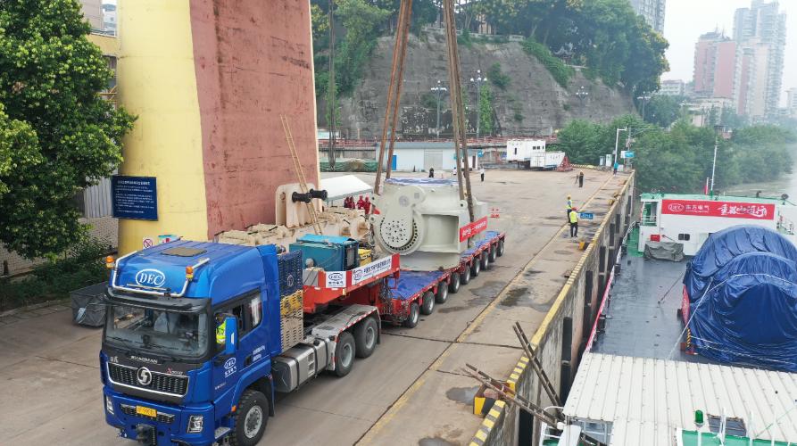 东方电气大型水电机组在乐山大件码头装船启运。乐山市融媒体中心供图