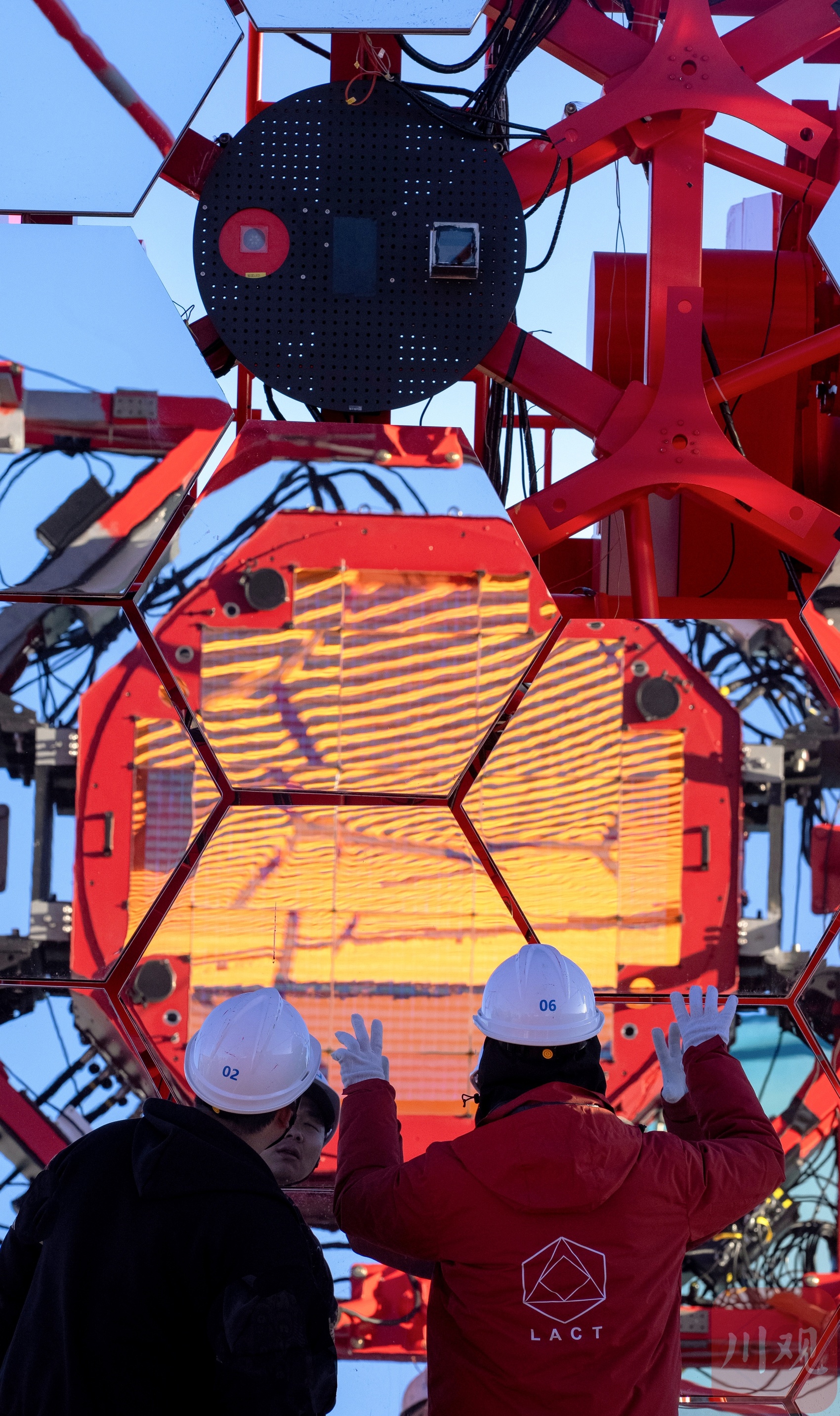 “今天是第一台LACT望远镜(工程样机)安装后的首次对天观测。我们将这台高灵敏度的望远镜直接瞄准宇宙线的一个候选源天体,这在天文学上称为望远镜的‘首光’。”一同见证这一时刻的中国科学院院士、“拉索”首席科学家曹臻在现场表示,“这也是这台给宇宙拍照的高清‘相机’的首次亮相。”