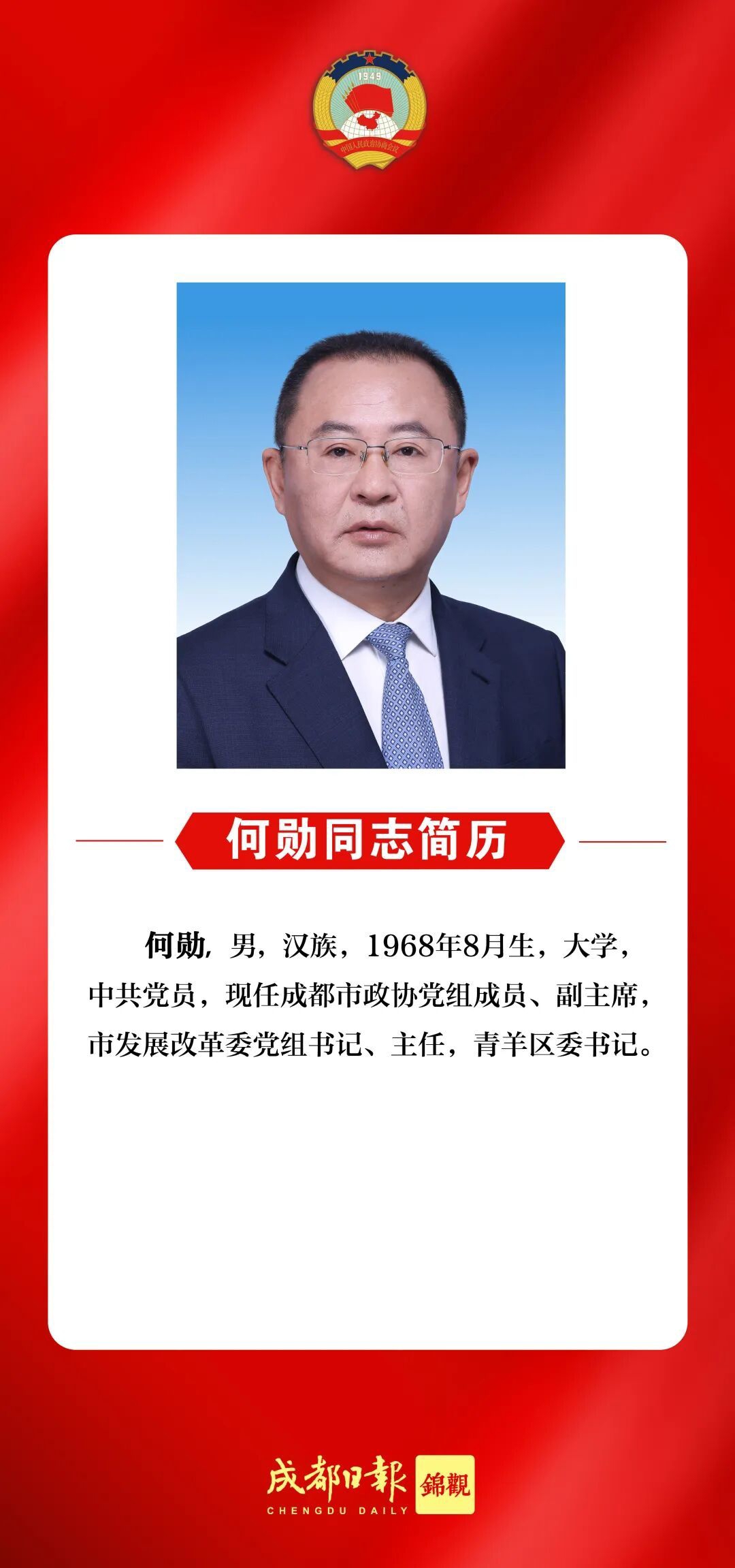 (2026年1月30日政协第十六届成都市委员会第四次会议选出)