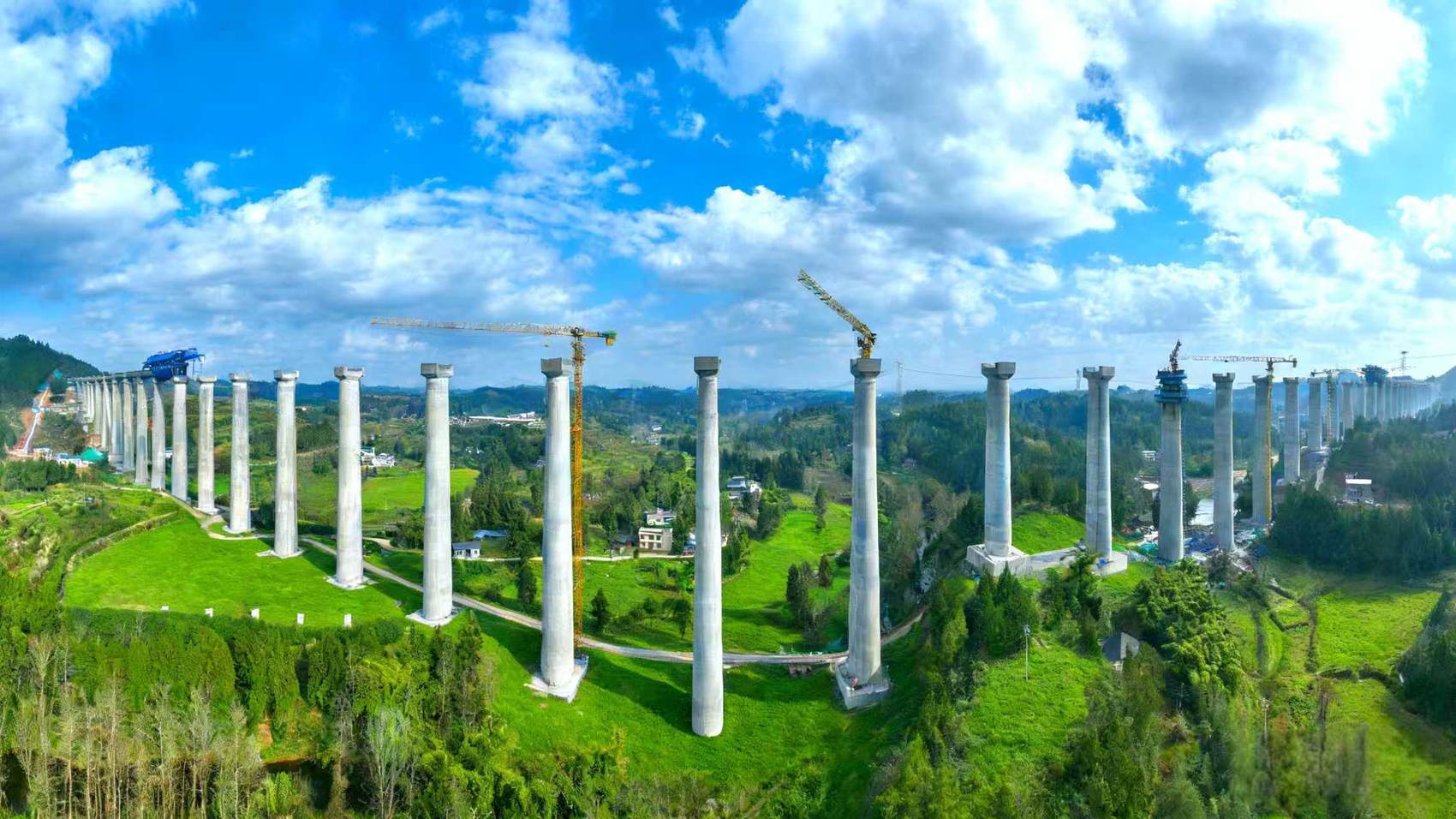 据介绍,为克服传统翻模施工工艺在高墩施工中的局限性,项目团队经过多方论证,引入外爬内提式液压爬模系统。该系统配备的双端可调圆弧半径模板,可在爬升过程中根据槽墩实体外形尺寸自动适配,避免了模板反复拆装的繁琐流程,不仅大幅提升了施工效率和作业安全性,也有效降低了综合成本。在技术赋能与全员协作的推动下,项目连续两个月实现月进度超210米纪录,墩柱施工进度较原计划大幅提前。