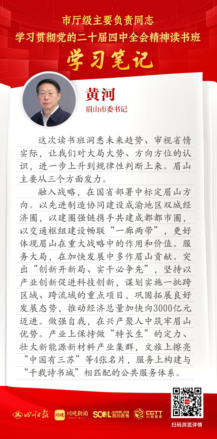 这次读书班洞悉未来趋势、审视省情实际,让我们对大局大势、方向方位的认识,进一步上升到规律性判断上来。眉山主要从三个方面发力。