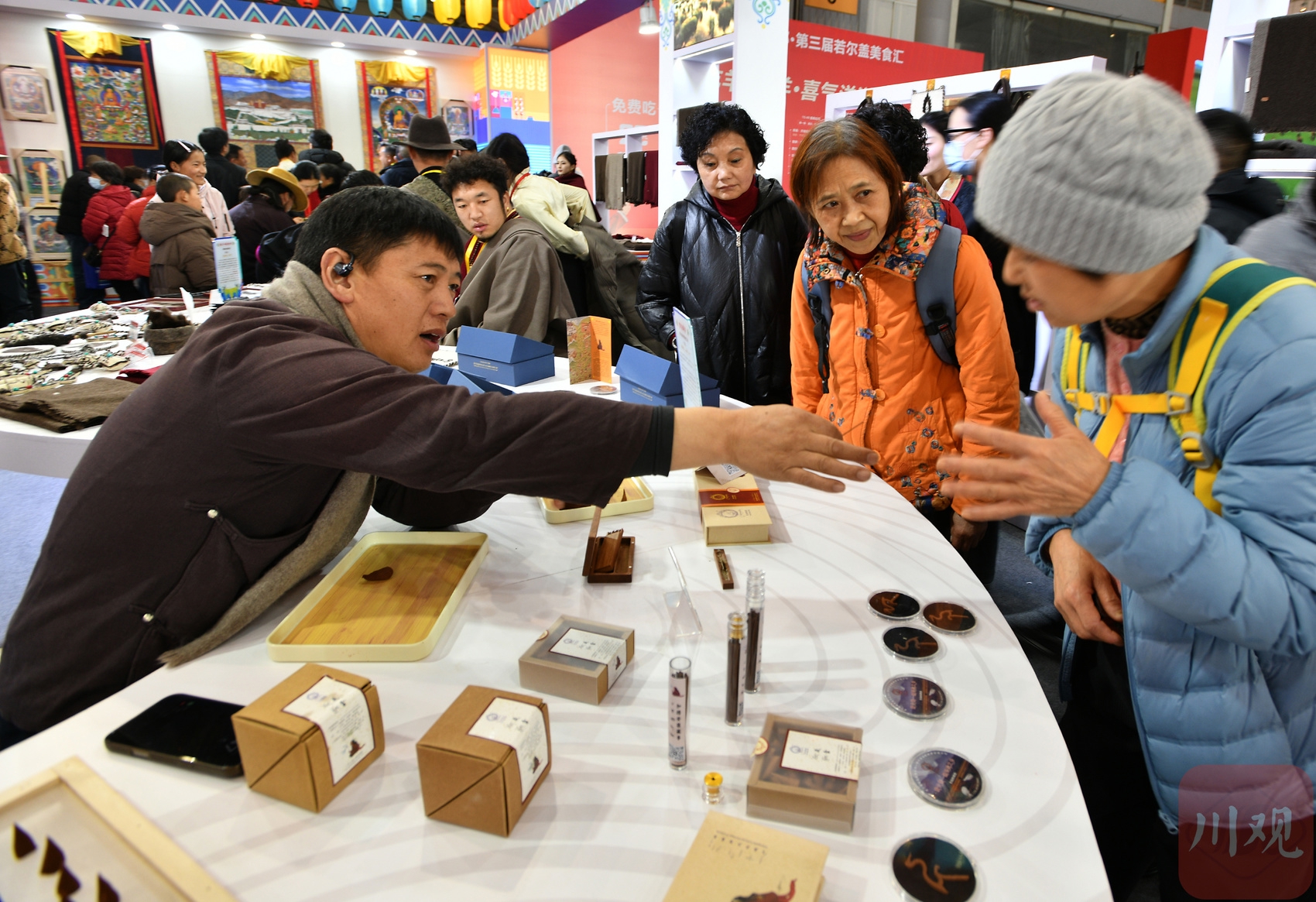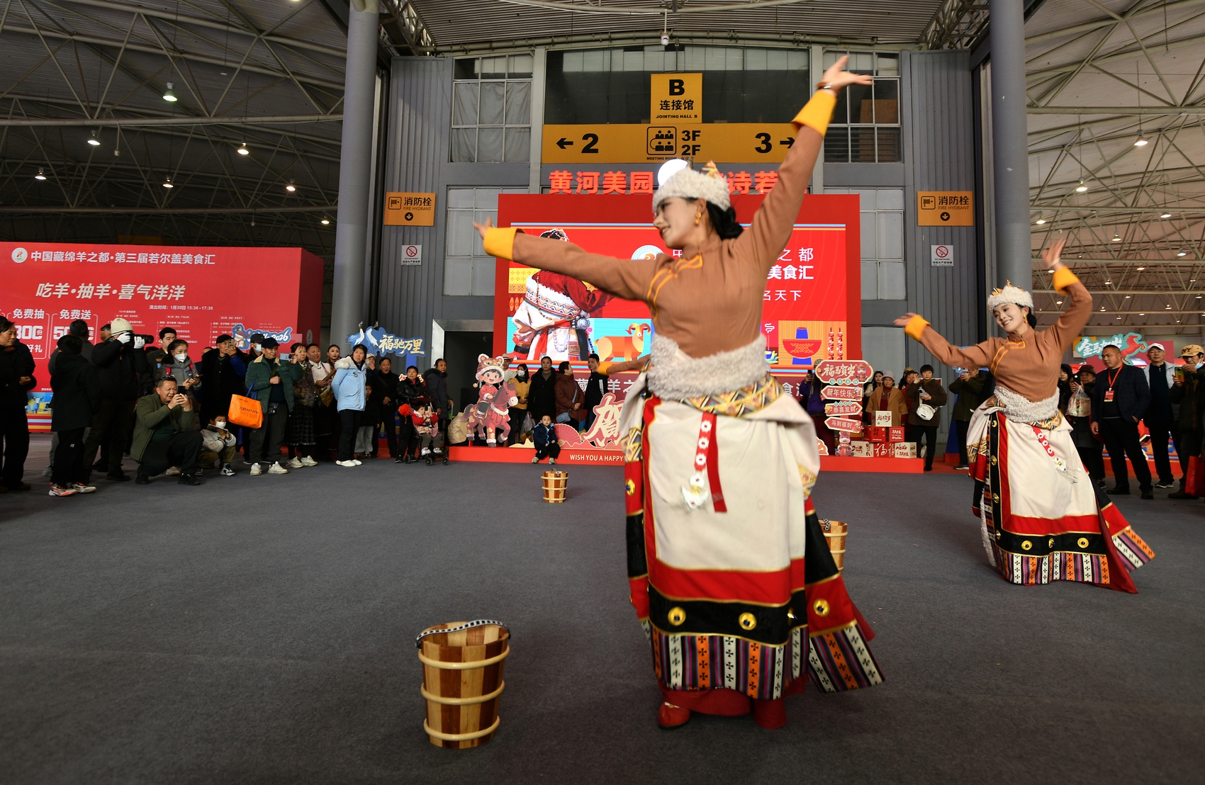 本届年货节汇聚全球10万余种优质年货,其中若尔盖美食汇亮点纷呈。原味蕨菜、青稞原浆、松茸鱼皮花生等20余种来自雪域高原及黄河第一湾的特色农产品集中亮相,免费试吃的烤藏绵羊、手抓羊肉香气扑鼻,吸引很多市民排队品尝。展区内,藏医、藏香、唐卡及金属制品等多个州级非遗现场展演,5000张若尔盖花湖、黄河第一湾景区门票免费派发,进一步聚拢人气,让市民在采购之余感受高原文化魅力。