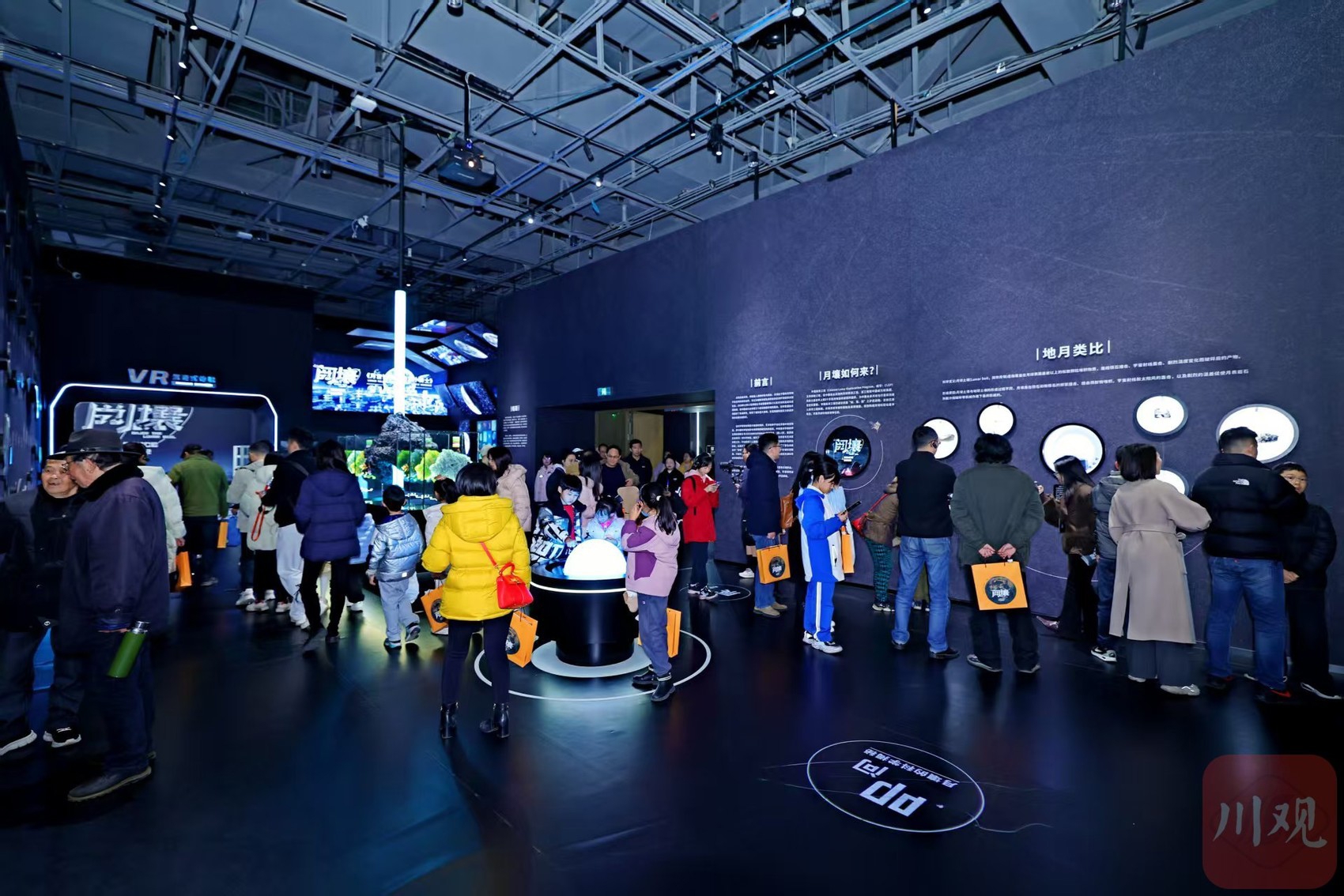 “阅壤”展览主展区人气火爆,市民游客在互动装置与科普展板前驻足探索,沉浸式感受月球科学的魅力。
