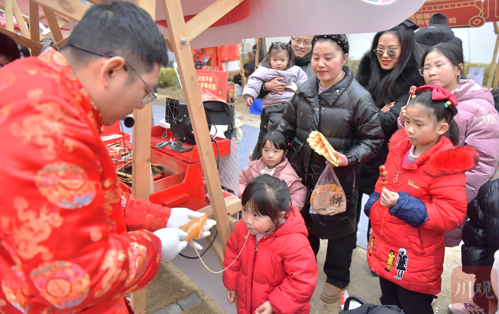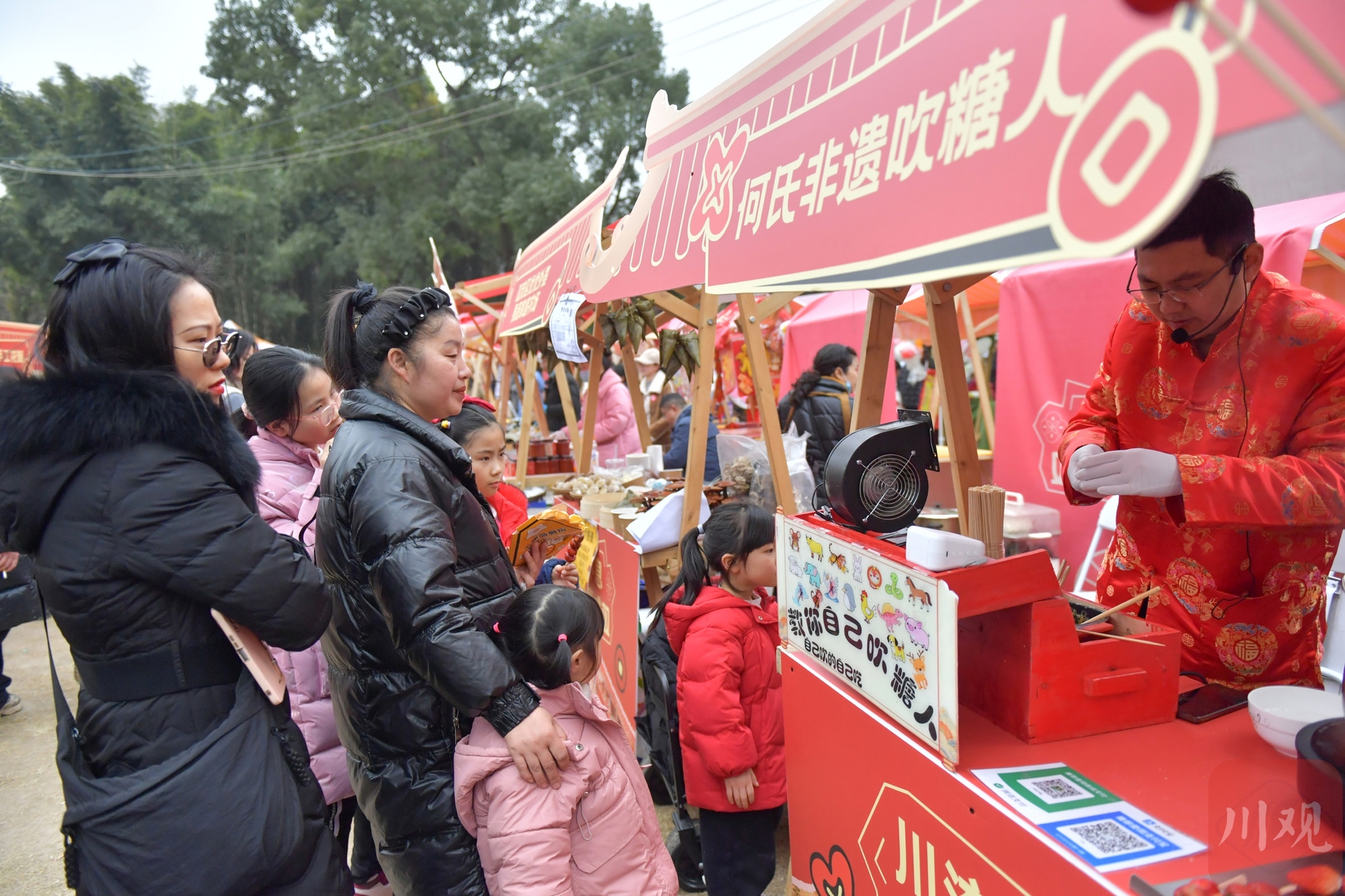 60多个展览摊位、100种特色商品……1月31日,以“川流不息 好事成双”为主题的成都市双流区永安镇首届“村糖会”在三新村永安造物场启幕。这场集非遗体验、特产展销、招商引才等于一体的“村糖会”为当地居民和游客奉上了烟火浓郁的新春盛宴。