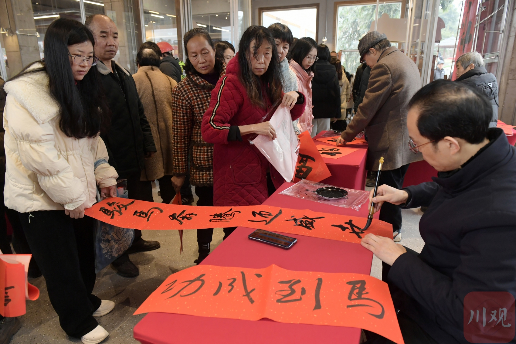 2026年1月31日,在成都市双流区永安镇三新村永安造物场首届“村糖会”上,当地居民排队领取春联。