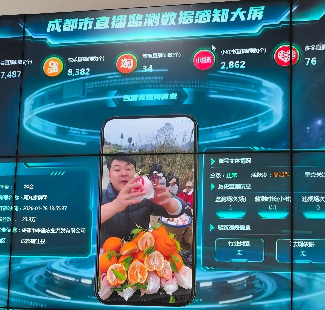 记者同时从成都市市场监督管理局获悉,该局即将上线“成都市直播电商AI智能监测系统”,实现PC端与移动端双端部署,覆盖各类直播场景,全天候进行数据采集与分析。目前,该系统在蒲江县市场监管局试运行,可对直播流进行精准结构化分析,实现对直播内容所售商品及其背后经营主体的穿透式关联识别,精准捕捉违规行为,形成“监测—识别—预警—处置”的智能化监管闭环,有效破解网络交易违法行为“发现难、取证难、处置慢”的监管痛点。