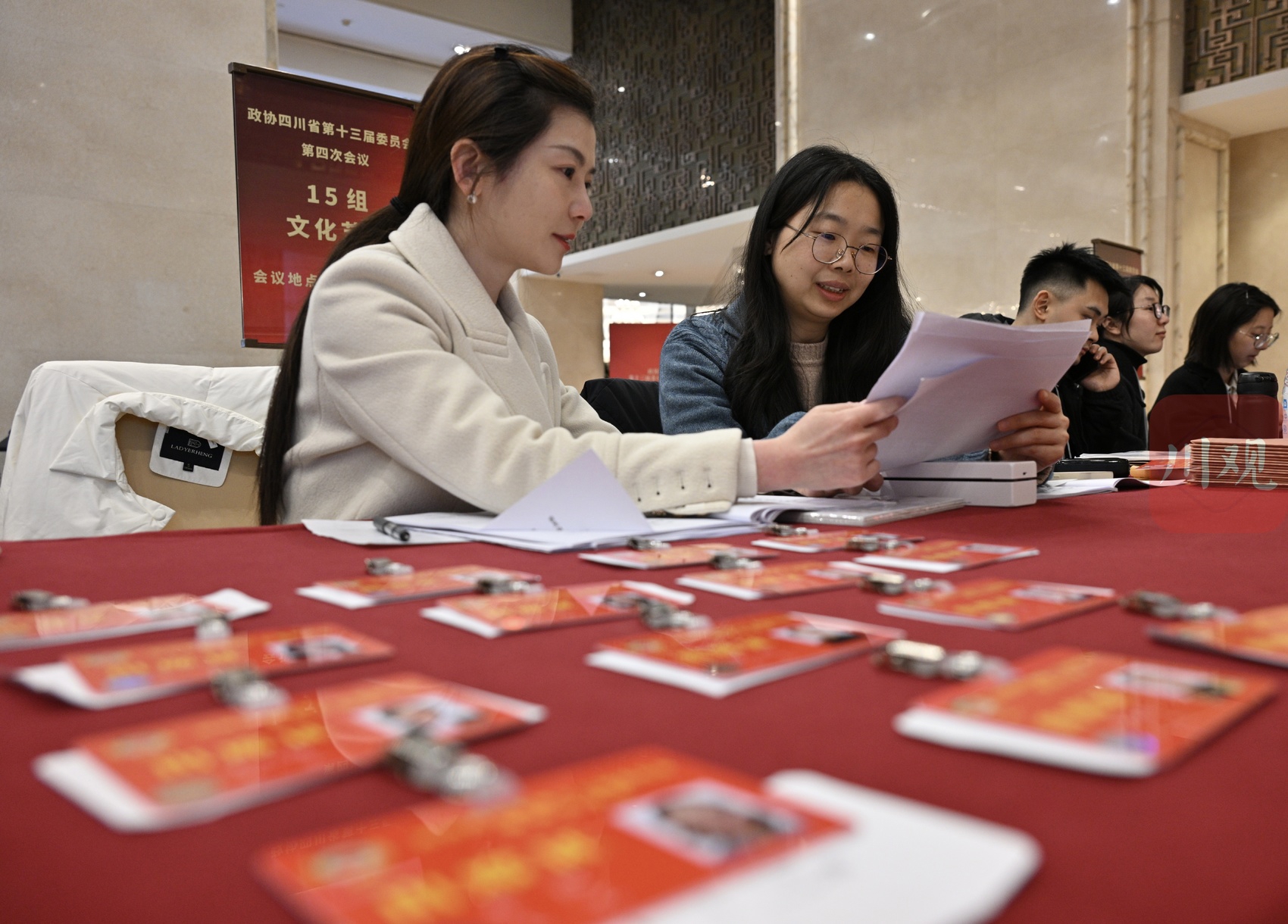工作人员核对委员名单。
