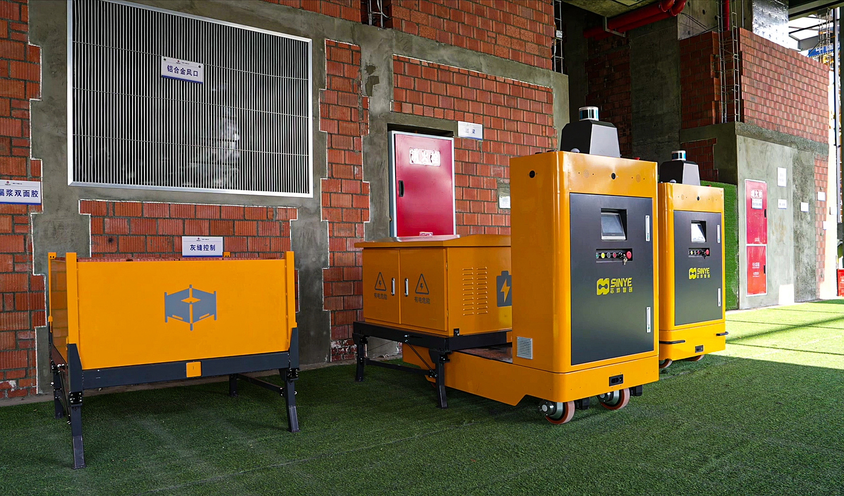 其中,多用途智能配送机器人就像工地“全能快递员”,拥有行业首创的BIM+多源融合导航技术,无网络也能精准定位、自主规划路径、智能避障。机器人还采取了通用转换底座,可搭载各类小型设备和建筑材料,单次运输效率较传统模式提升4—6倍,让工地运输更加省时省力。
