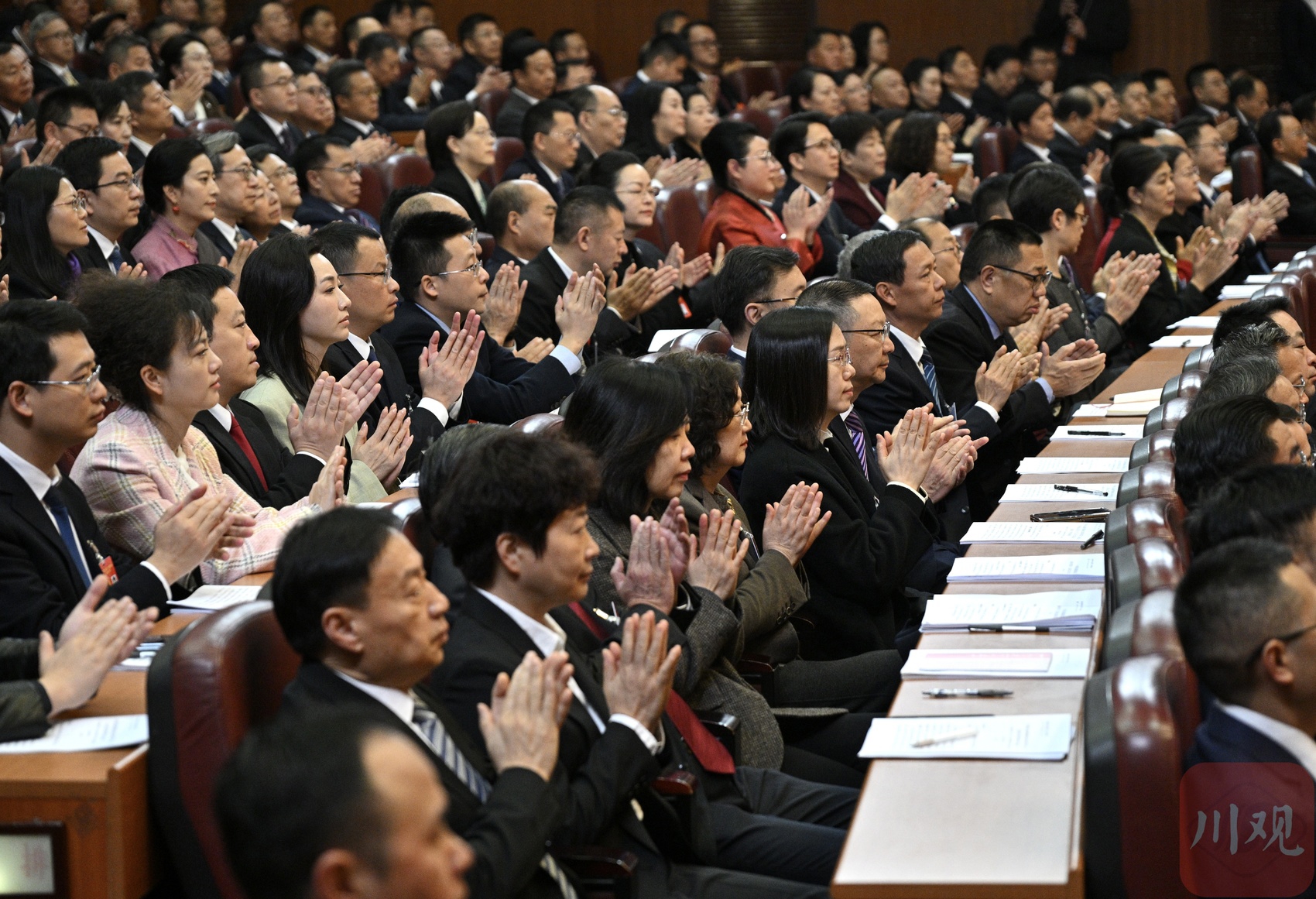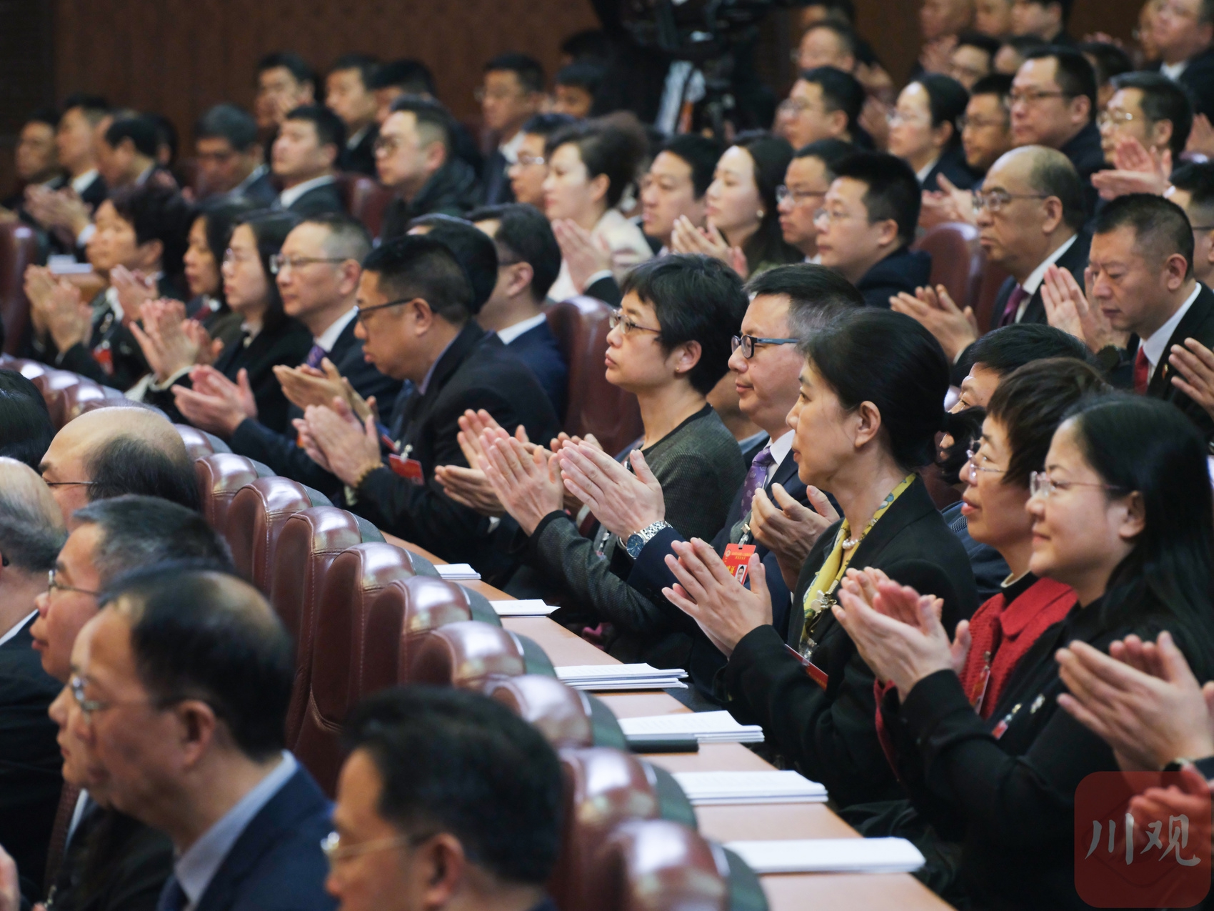 四川省政协十三届四次会议在成都隆重开幕,委员们高唱国歌。