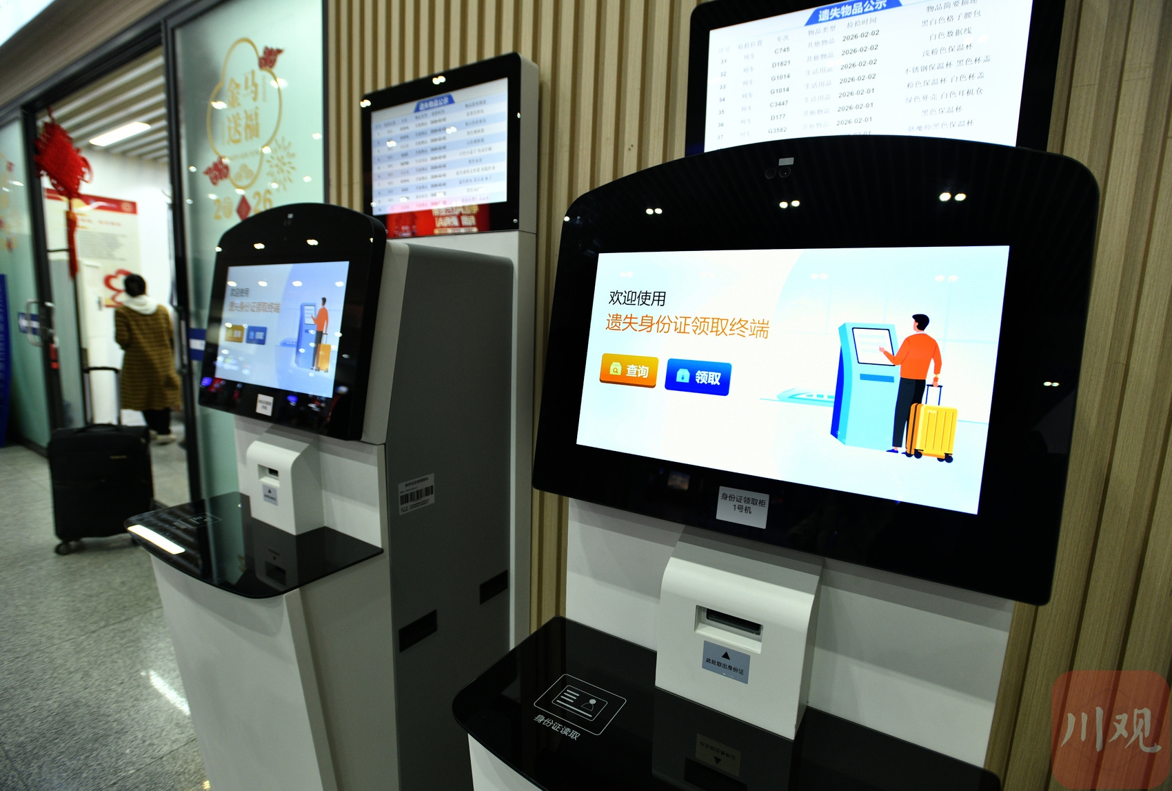 成都东站遗失物品招领处“上新”的遗失身份证自助领取机。