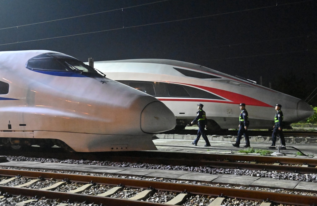 南宁动车所日常主要承担动车组一、二级检修、临修、外皮清洗、吸污作业、检修设备与信息化系统维护等任务。南宁铁路公安局南宁公安处长岗岭站派出所民警负责这里的安全守护,春运期间,他们坚守岗位,做好“陆地舰队”安全的“守夜人”。