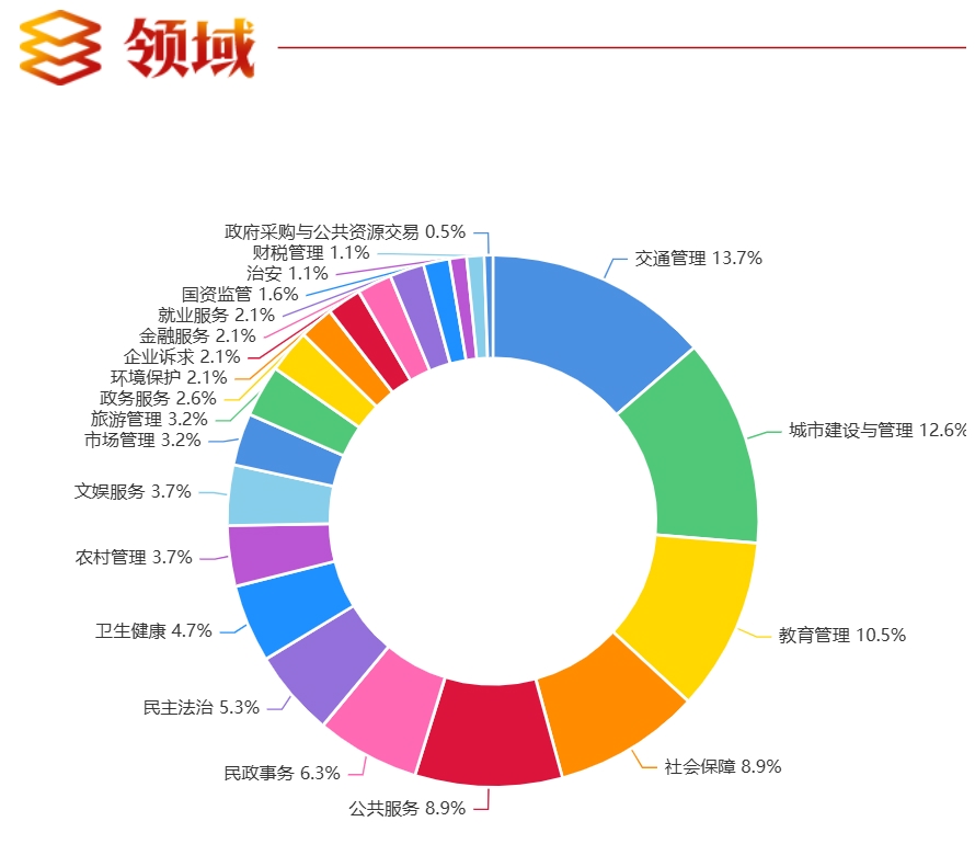 ◎网友关注热点方面,交通管理、城市建设与管理、教育管理领域留言量位居前三,社会保障、公共服务留言量并列第四,相关留言占比分别为13.7%、12.6%、10.5%、8.9%、8.9%。