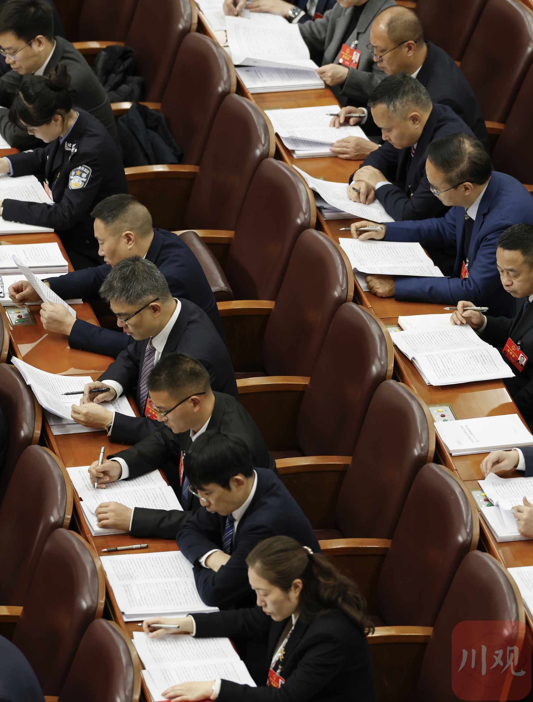 代表们认真审议政府工作报告。