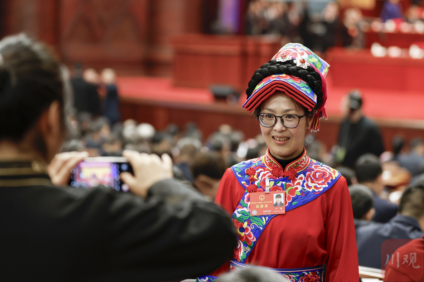 大会开始前,代表们在川观新闻互动区打卡。