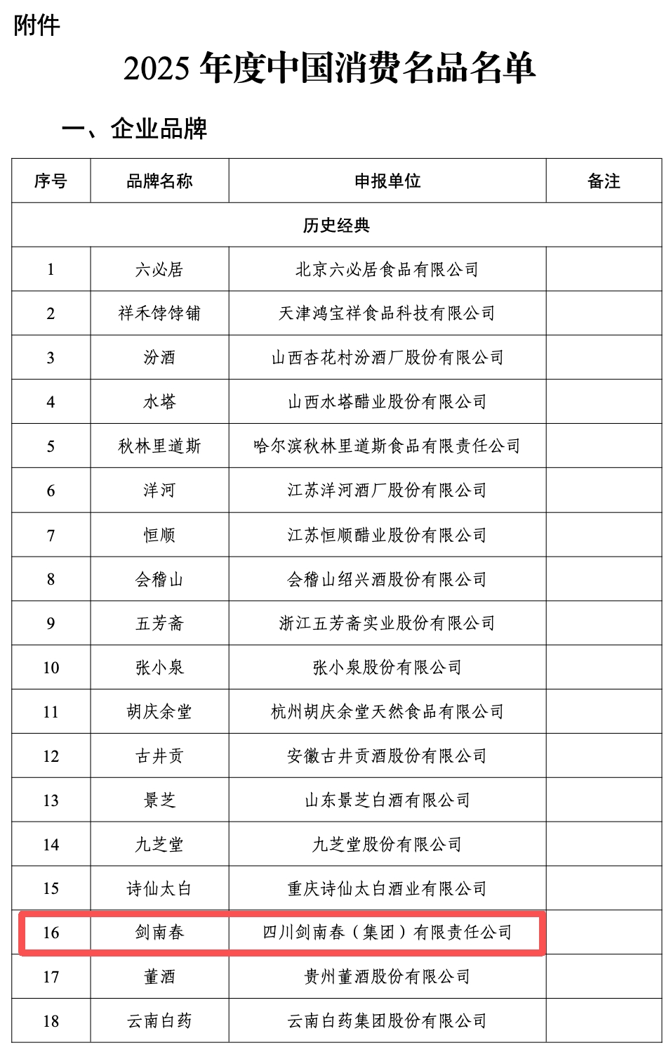2月3日,四川在线记者从工业和信息化部网站获悉,近日,2025年度中国消费名品名单正式公布。四川剑南春、康弘、彩虹等企业品牌和东坡泡菜、自贡彩灯、川南竹浆纸等区域品牌成功入选,涉及轻工、食品、医药等消费品领域。
