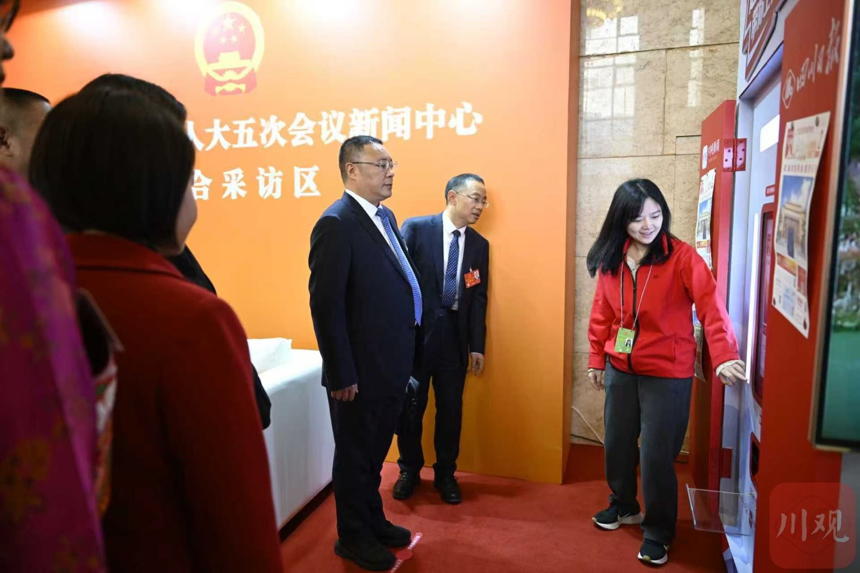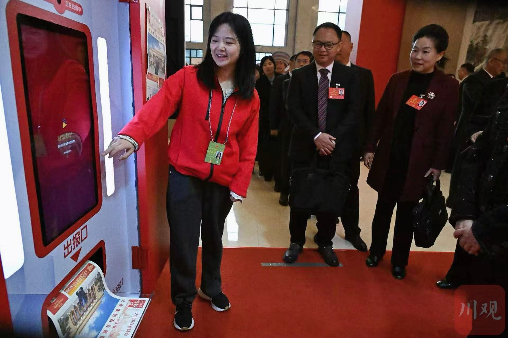 这些纪念报来自川观新闻为省两会特别设计的AI互动打卡装置——“两会头条”互动照相打印机,现场圈粉无数。自2月2日亮相省两会以来,已为代表委员制作近300份纪念报。