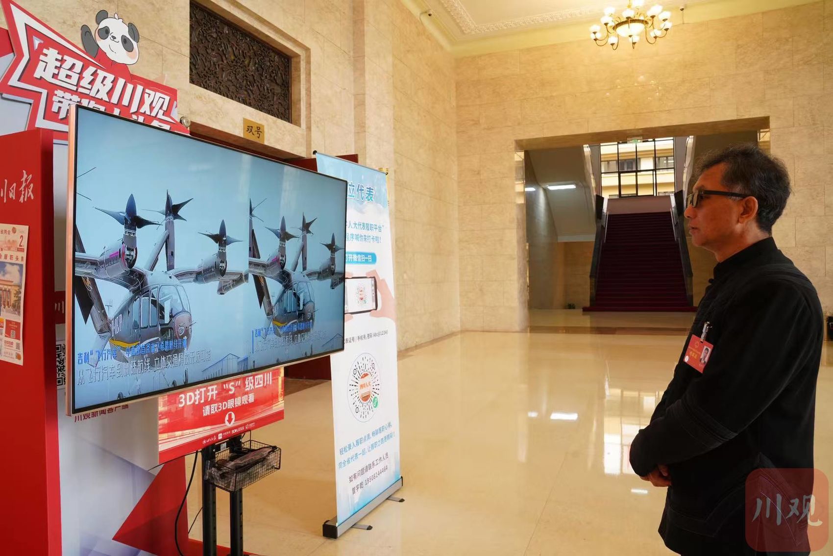 排队打卡的代表委员络绎不绝。大家在等候期间,还可以在一旁的大屏幕上观看川观新闻运用实景空间视频采集、AI立体转化等前沿技术,打造的3D视频巨作——《用立体方式打开“S级”四川》。“这震撼人心的一幕幕,让人身临其境感受到了2025四川的高度、广度、深度、温度。”代表委员们纷纷表示。
