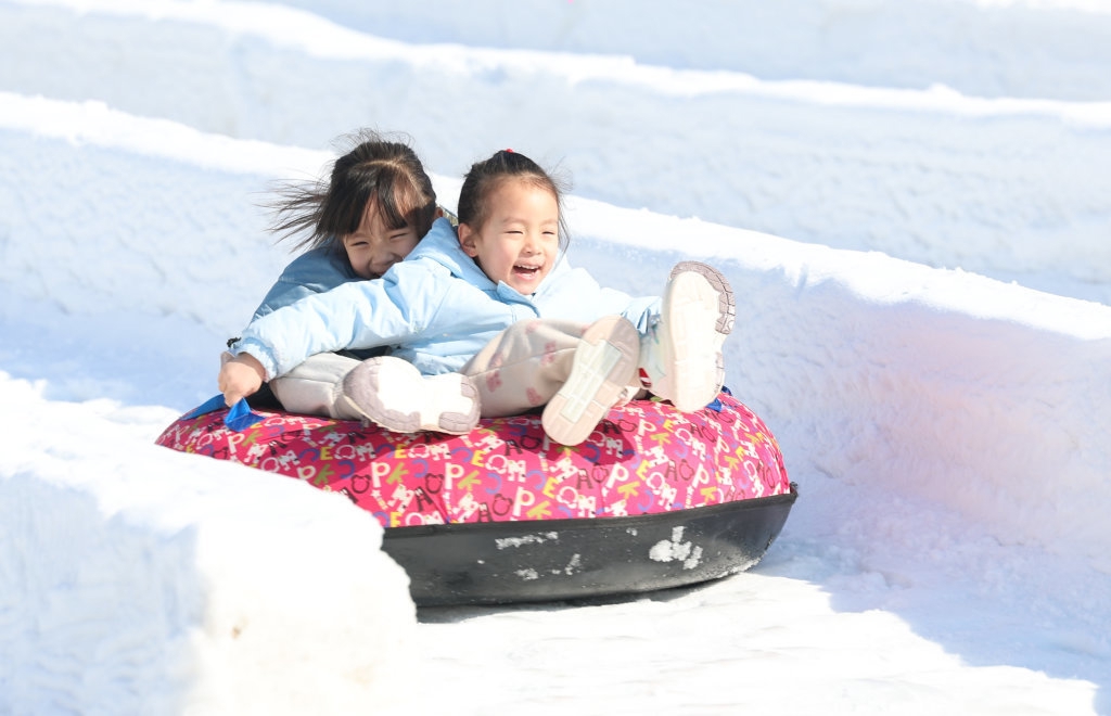 小朋友们在河北省石家庄市正定冰雪嘉年华玩耍(2月1日摄)。