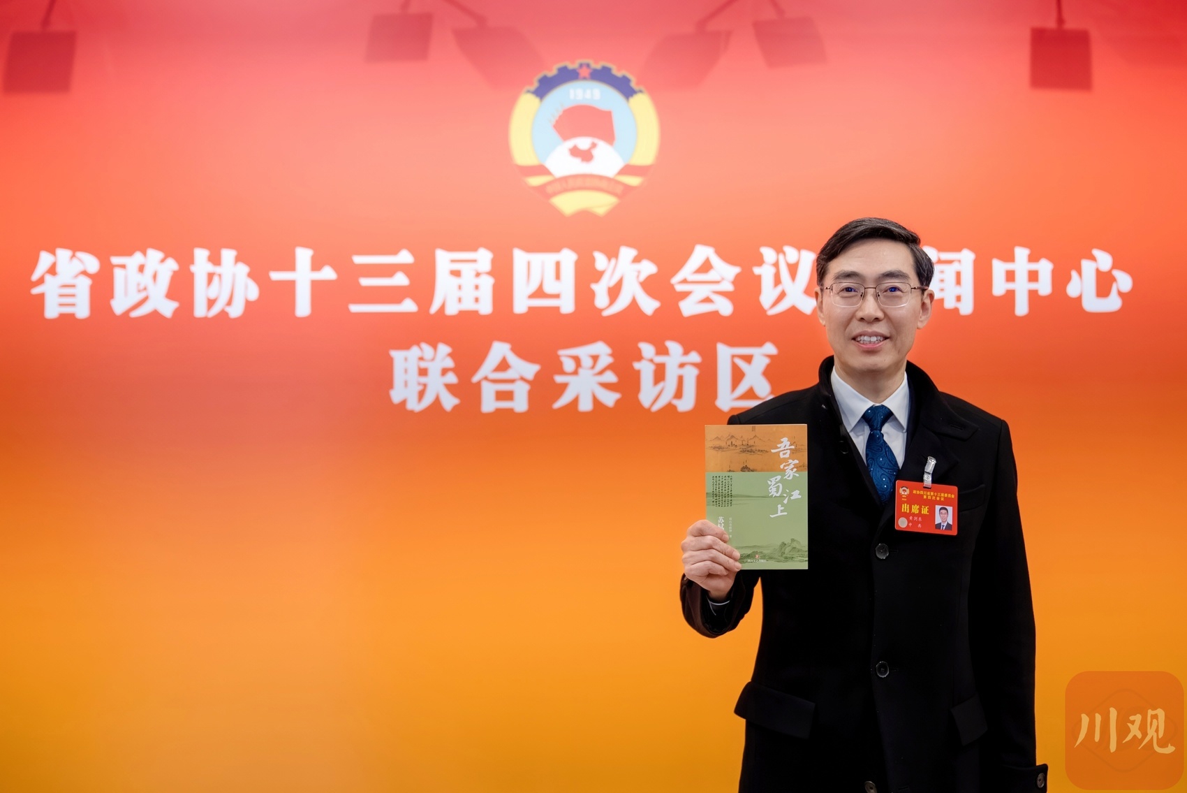 省政协委员、眉山市政协主席黄剑东带来一本《吾家蜀江上:苏轼在眉山》。 卢春阳 摄