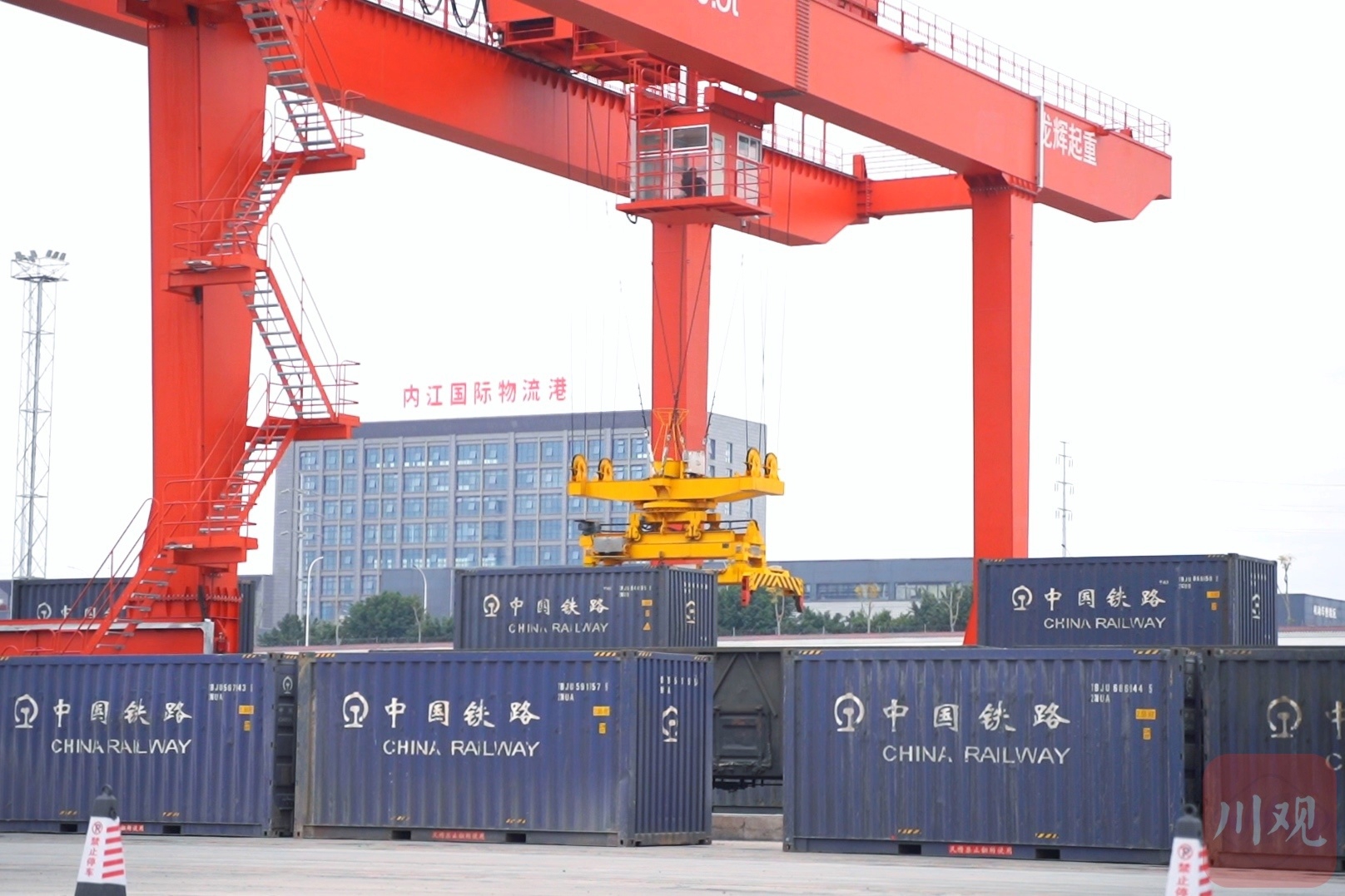 1月30日6点55分,随着汽笛声穿透晨雾,位于内江市白马镇的内江国际铁路港迎来当天的第一趟列车。龙门吊的探照灯将“内江国际铁路港”几个红字照得通亮,18箱从金沙江运来的砂石、3箱从东北运来的玉米依次被吊装到位。