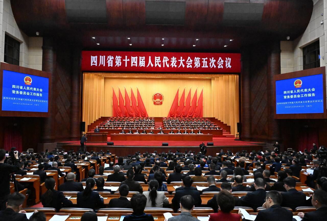 2月4日下午,四川省第十四届人民代表大会第五次会议举行第二次全体会议。受省人大常委会委托,省人大常委会副主任王雁飞作省人大常委会工作报告。