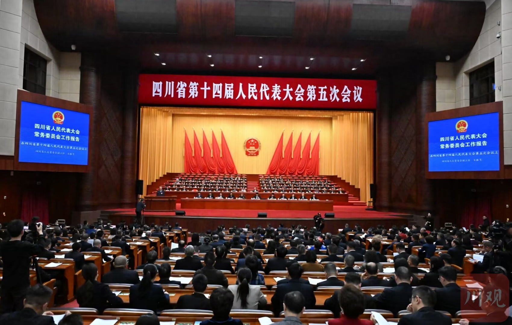2月4日下午,四川省第十四届人民代表大会第五次会议举行第二次全体会议。受省人大常委会委托,省人大常委会副主任王雁飞作省人大常委会工作报告。