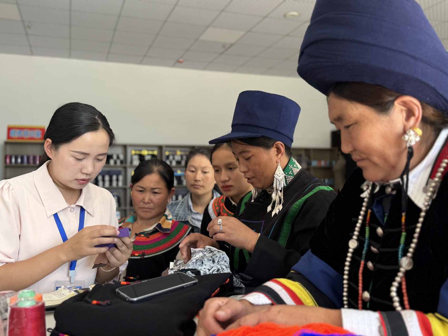 雷波县县级彝族服饰传承人取比格西在传授彝绣技艺。自然伙伴计划供图