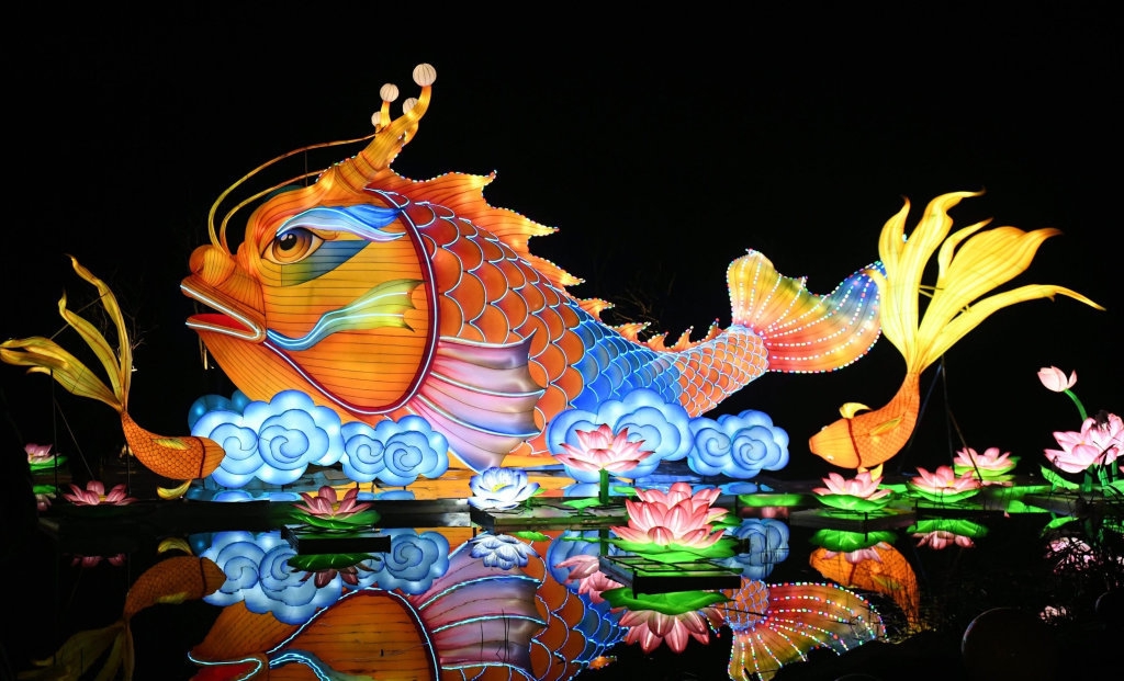 这是2月3日拍摄的2026年粤港澳大湾区灯会园区展示的灯组《鳌鱼》。