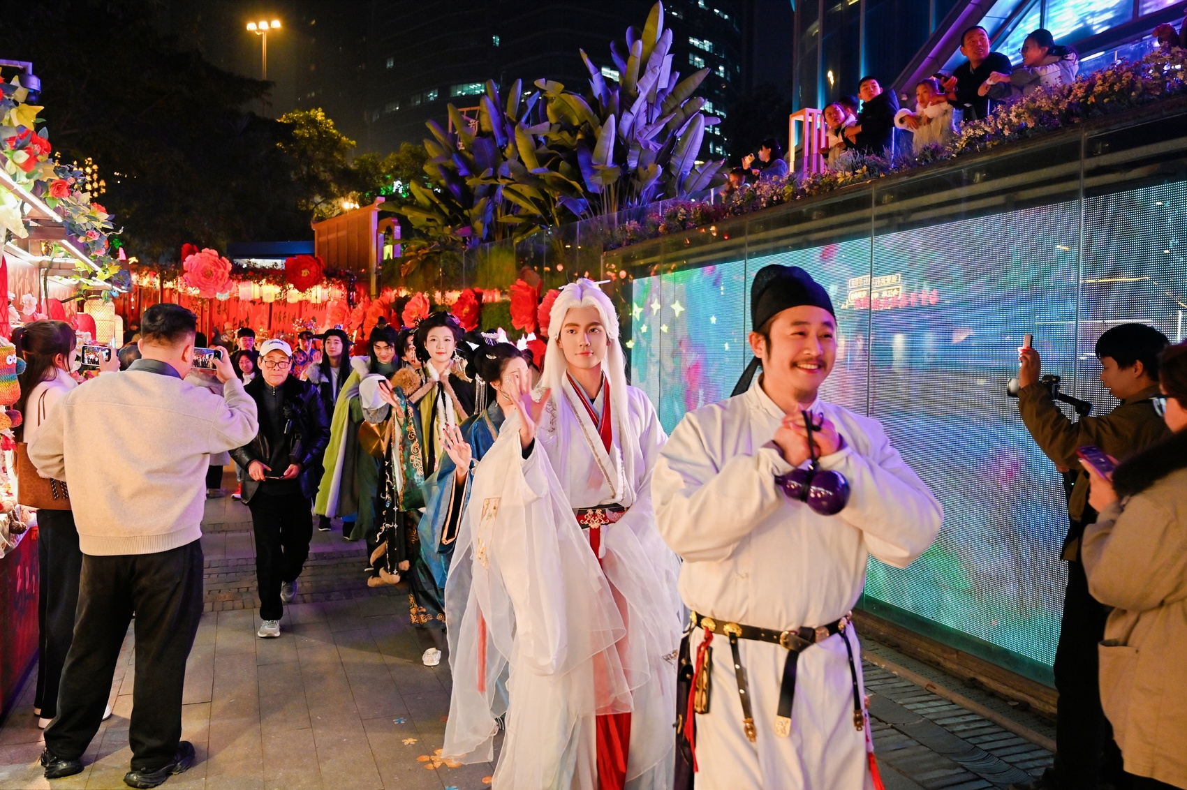 在东门码头打卡电子孔明灯,再与“杜甫”来一场关于马的飞花令……2月4日晚,夜锦游江拉开春节活动序幕,以“神骏出东方·锦江烟火盛”为主题,依托滨水空间综合体,为市民游客带来独特的假期体验。