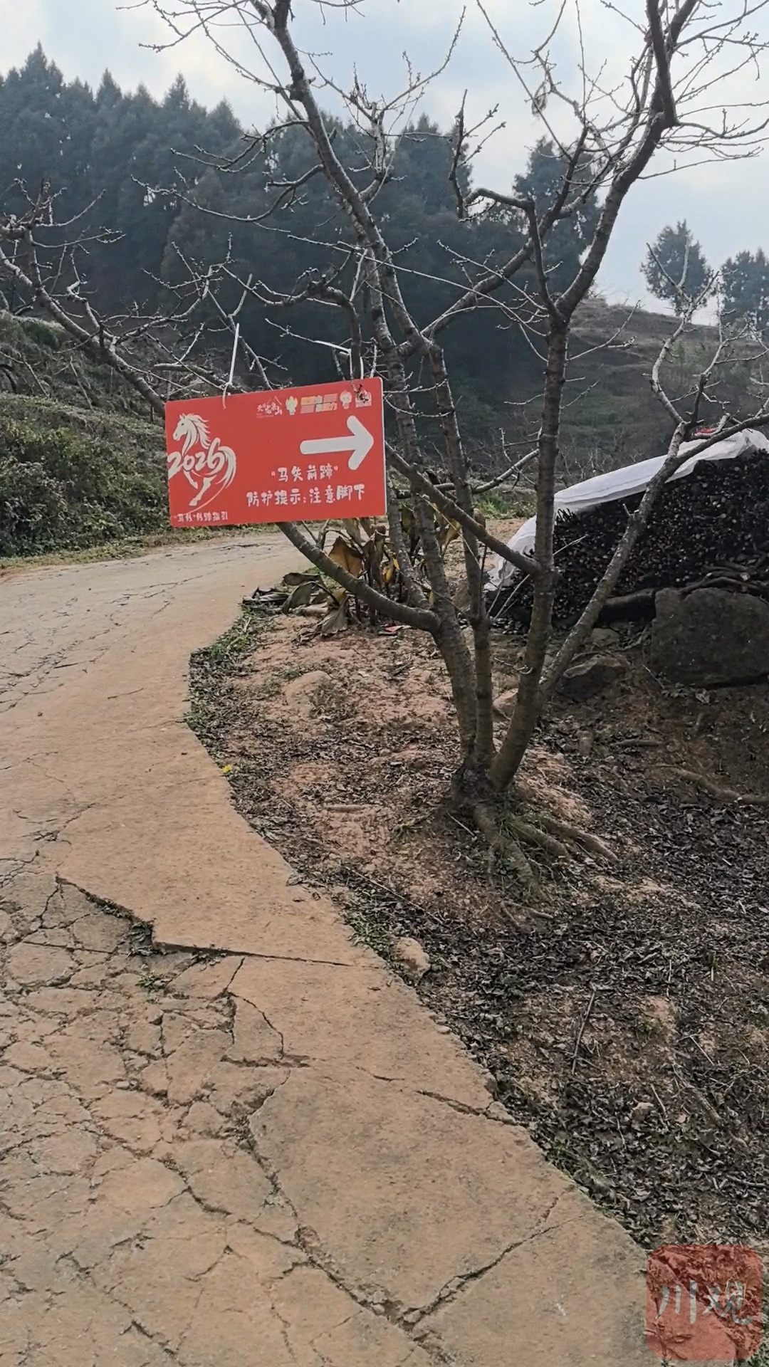 2月4日,四川在线记者来到了网络上爆火的“野马”路线起点处。路旁一块醒目的标识上写着“此处为未开发野游步道,蛇虫出没、坡陡崖深、谨慎进入”等字样。尽管如此,还是有不少游客从这里出发。