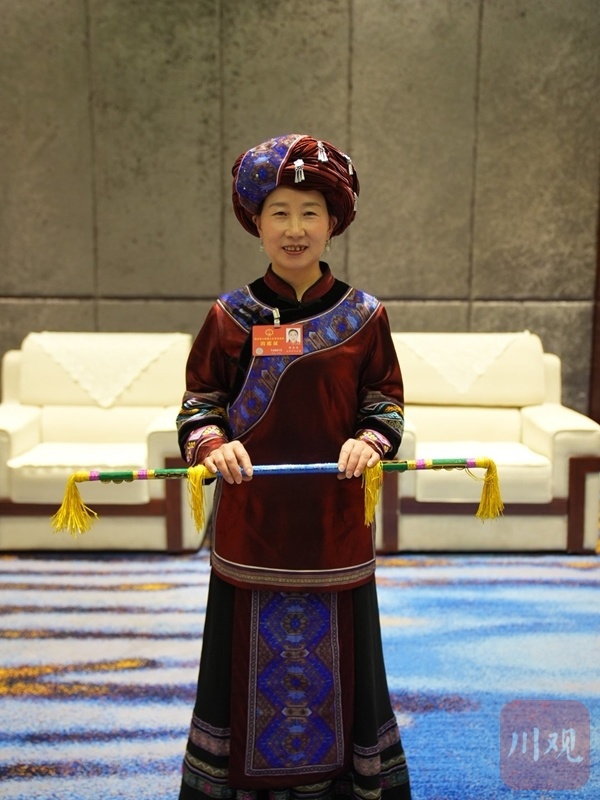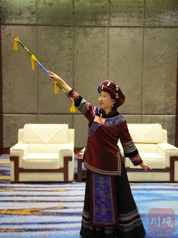 黄金美自信从容地展示民俗舞蹈,引发现场不少省人大代表感叹:四川文化资源、旅游资源富集,倘若更多人像黄金美一样勇于展示、勇于推荐,相信会吸引更多游客来四川游玩,四川的文化旅游业会更兴旺。