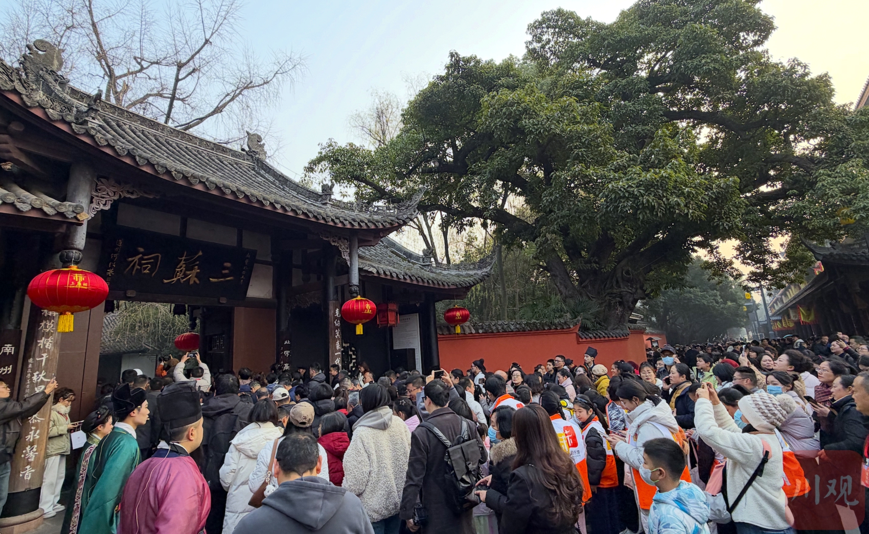 除了延续祭拜仪式,三苏祠还精心策划了系列配套活动——既有主题演出、写春联、投壶、拓“福”、猜灯谜等沉浸式互动体验,也有全新专题片《归去来兮》同步亮相。活动期间,三苏祠博物馆向公众免费开放,让更多人共享东坡文化盛宴。眉山三苏祠博物馆副馆长黄建表示,今年的“寿苏会”有专门创作的演出节目,希望通过多元形式,让人们沉浸式感受东坡文化,感受流动的风雅。