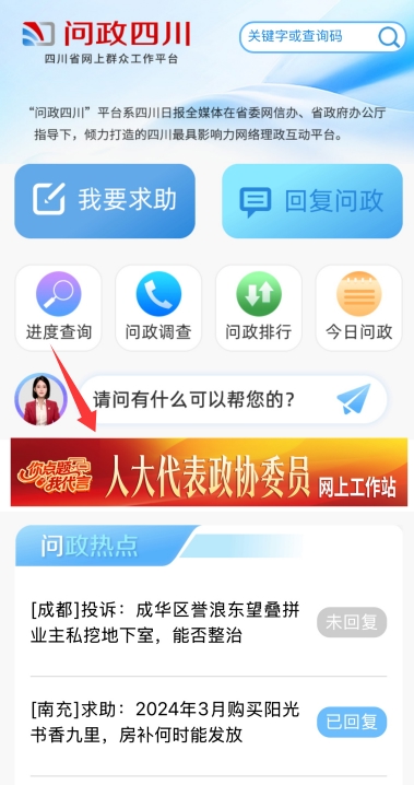 “问政四川”小程序页面