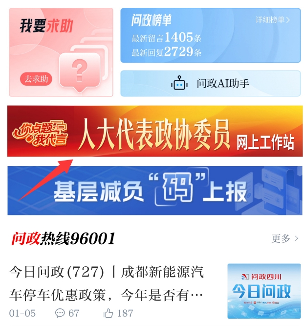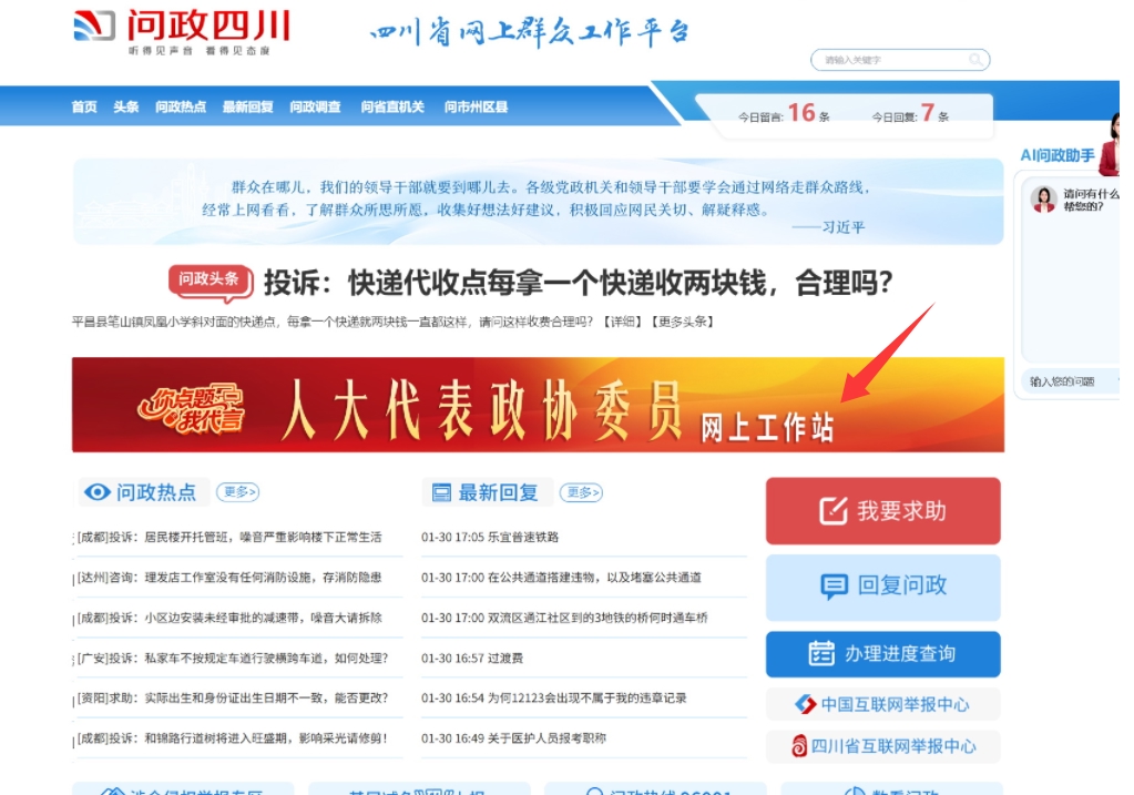 ♦打开微信搜索“问政四川”小程序,点击“网上工作站”即可参与留言;