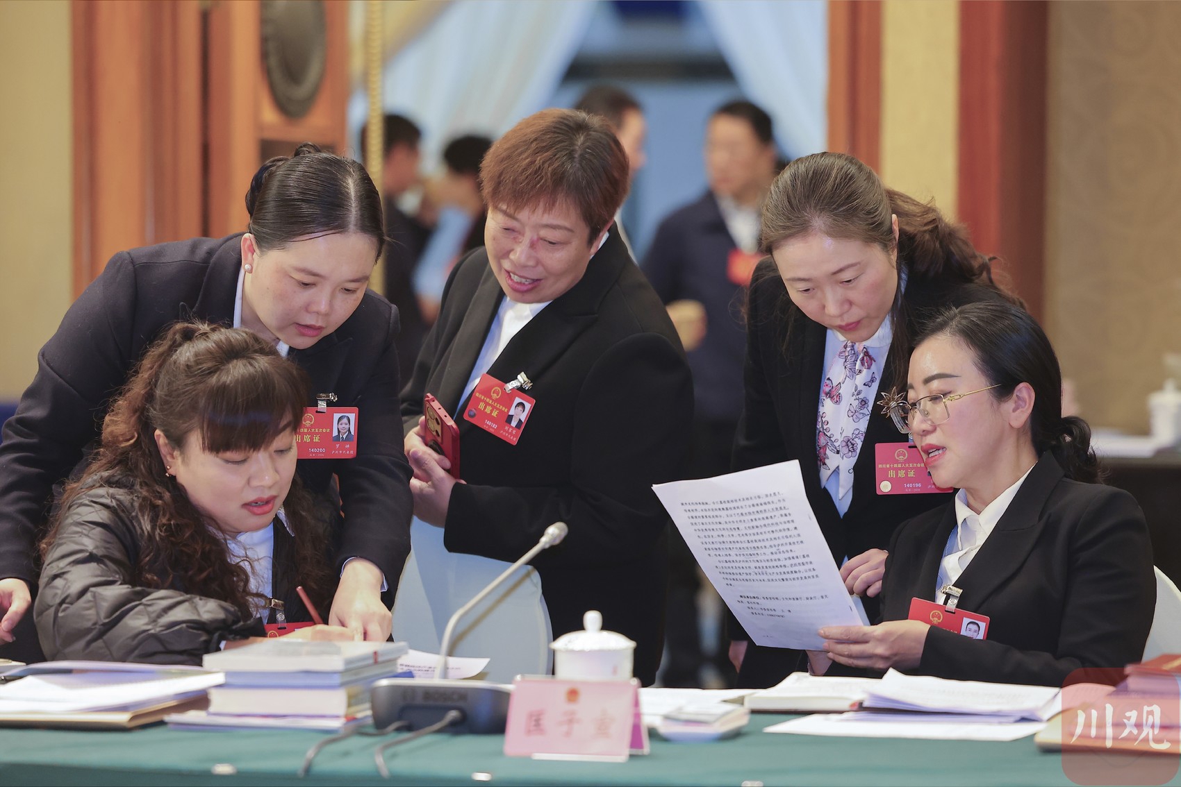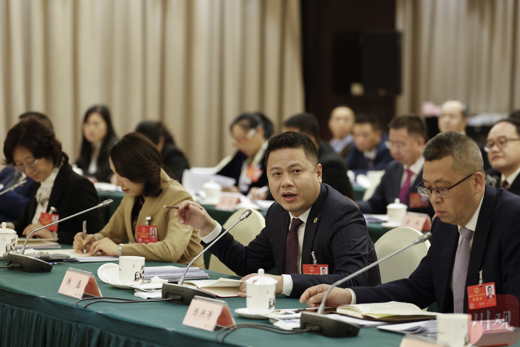 小组会间隙,代表们热议政府工作报告,围绕各自关注的领域进行交流。