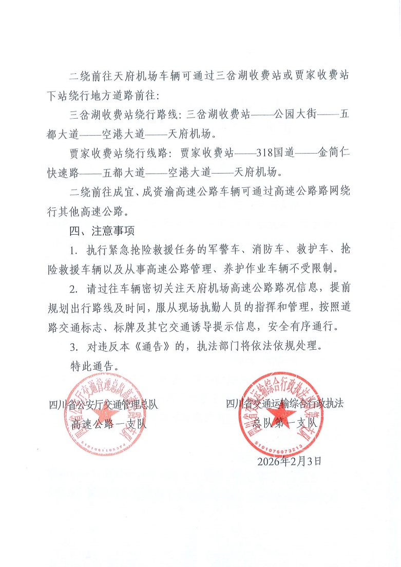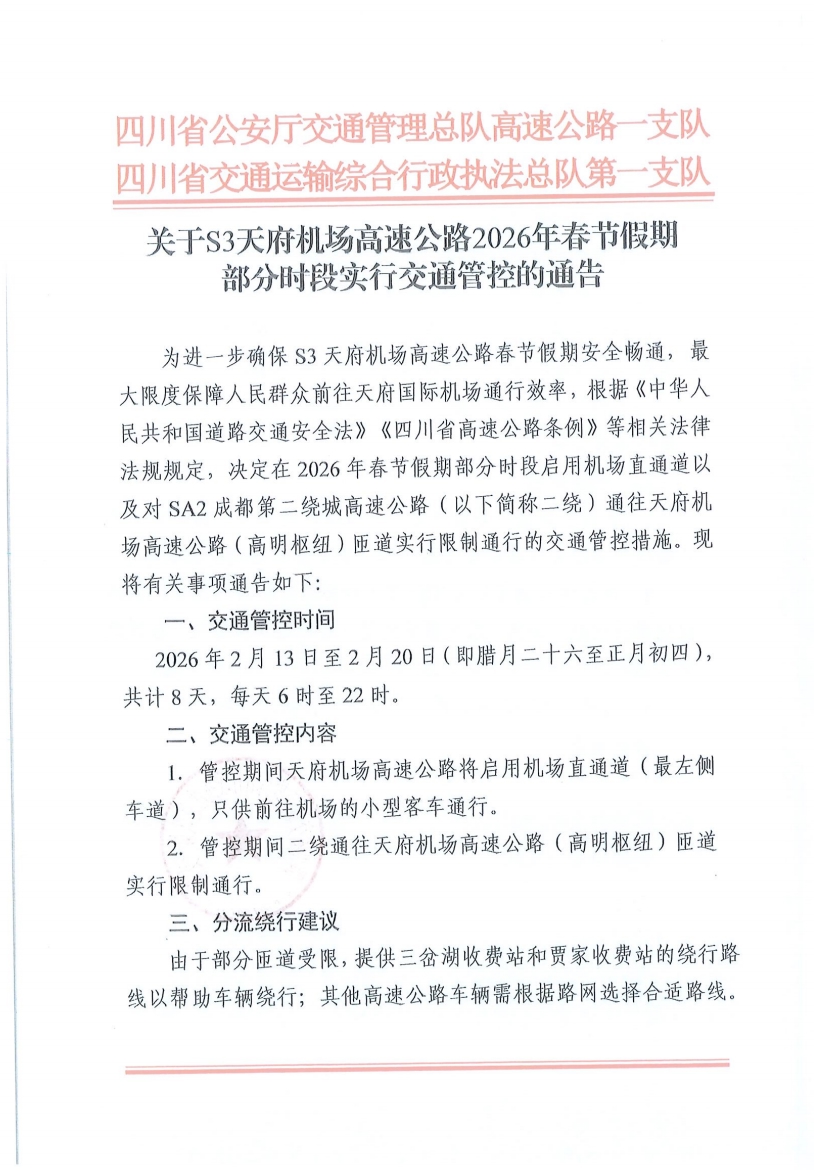 2026年春节假期部分时段实行交通管控