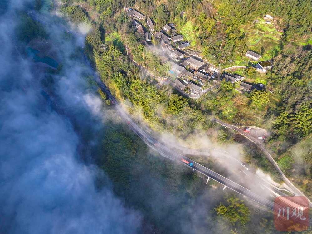进入腊月,甘溪坡茶马驿的“主理人”李勇就没闲下来过。2月5日早上8点,他一如既往来到位于雅安市天全县小河镇红星村6组的驿站,开始一天的工作。甘溪坡是这里的小地名。难得的冬日暖阳把团雾逼下河谷,半山腰的驿站仿佛停靠在“雾湖”边的扁舟。