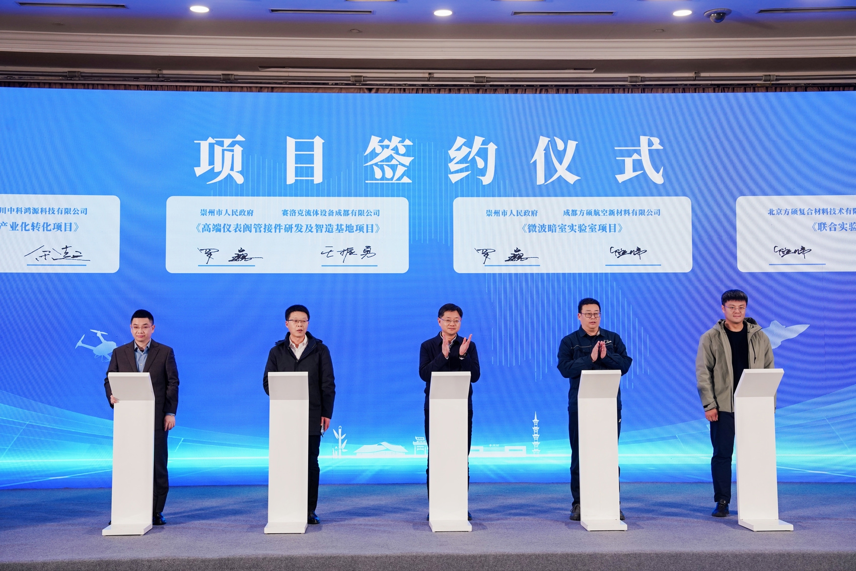 会上同步举行了项目签约仪式。四川崇州经济开发区管委会与四川中科鸿源科技有限公司、东华大学、成都方硕航空新材料有限公司、赛洛克流体设备成都有限公司签署合作协议,将在技术研发、成果转化、产业协作等领域深化合作,旨在进一步补强本地产业链。