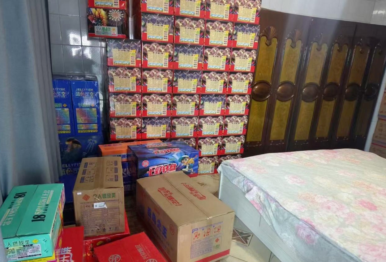 案例二:农户家里“人货混居” 卧室变非法烟花“仓库”