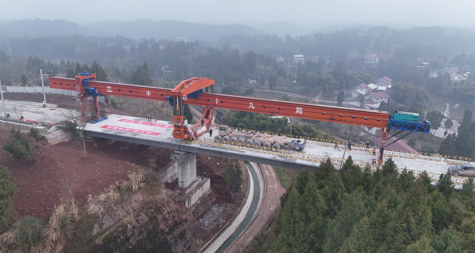 中铁十九局成渝中线施工负责人王福杰介绍,为顺利完成太平2号特大桥架梁任务,架梁团队采用“分区推进、多点联动”的施工策略,增加一台运梁车并分别在距离梁场11公里和20公里的位置增设两处会车点,保障了架设作业连续高效推进。顺利完成600孔箱梁预制和架设作业。