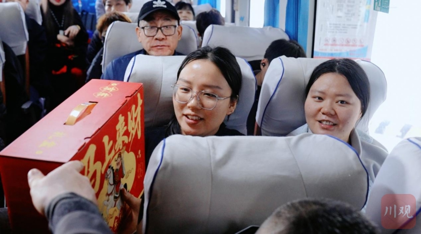 随着大巴车的缓缓启程,客运西站的工作人员挥手送别。达州客运西站综合办公室主任张太文表示,“感谢川观新闻和京东超市开展本次活动,很受触动。年货礼包传递了关怀与年味。作为客运西站工作人员,我将以更暖心、更细致的服务,守护返乡人员平安团圆路,用责任与温情护航春运。”