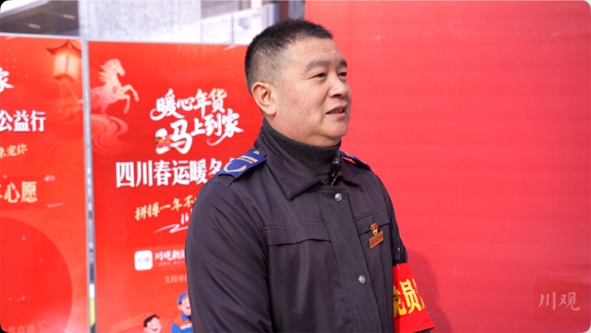 “新年快乐”“辛苦了,欢迎回家”……工作人员在此等候多时,大家举着活动手卡热情迎接。活动现场,“暖心年货‘马’上到家”的主题展板格外醒目,一旁是由川观新闻与京东超市、川交达运共同布置的年货发放区。