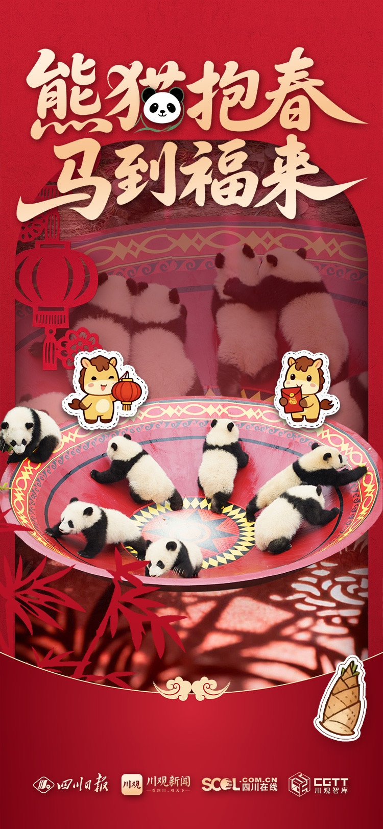 “熊猫抱春,马到福来”“萌宝贺岁,马年顺遂”“熊猫送暖,一马当先”……当圆滚滚的“团子”遇上喜庆吉祥的祝福语,会碰撞出怎样萌动人心的画面?