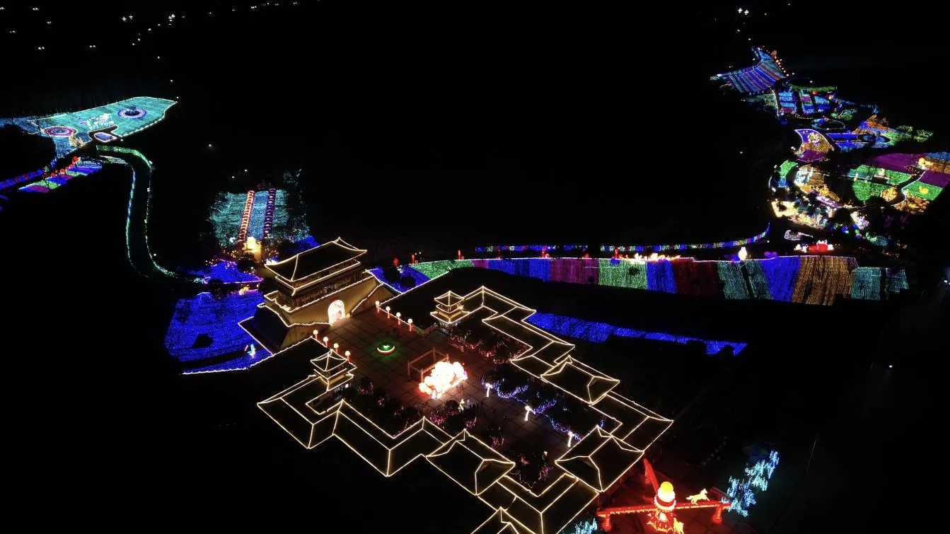 夜幕降临时,千万盏花灯同时点亮,无人机表演在夜空拼出各种图案,绚丽烟花在上空绽放。在这里,传统年味与未来想象激情碰撞,为每一位游客留下一个独一无二、欢乐沸腾的国潮新年记忆。